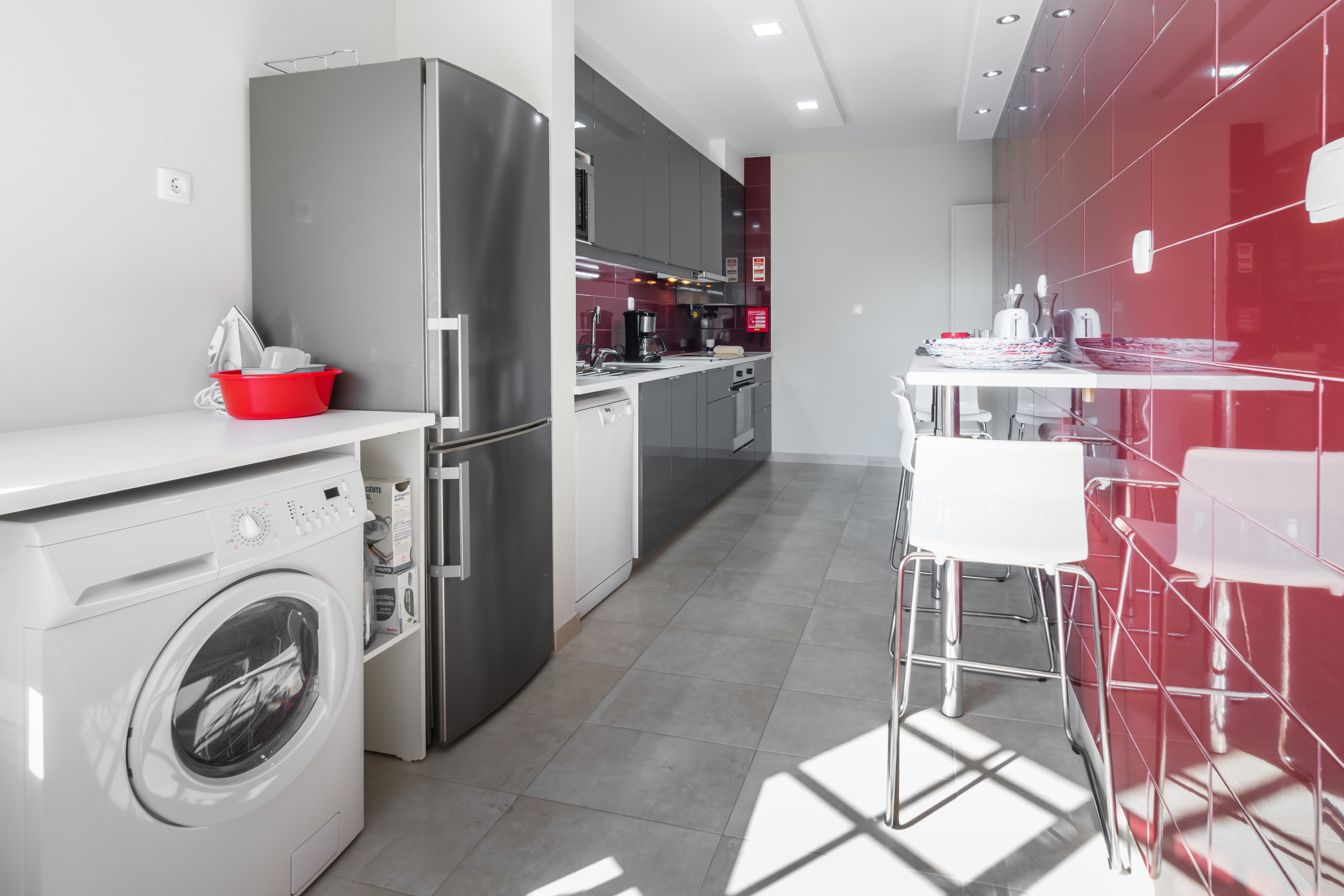 Al lado opuesto de las habitaciones tiene la cocina moderna y totalmente equipada. De la estufa, horno, nevera de tamaño completo a lavadora de platos, máquinas de lavado y secado.