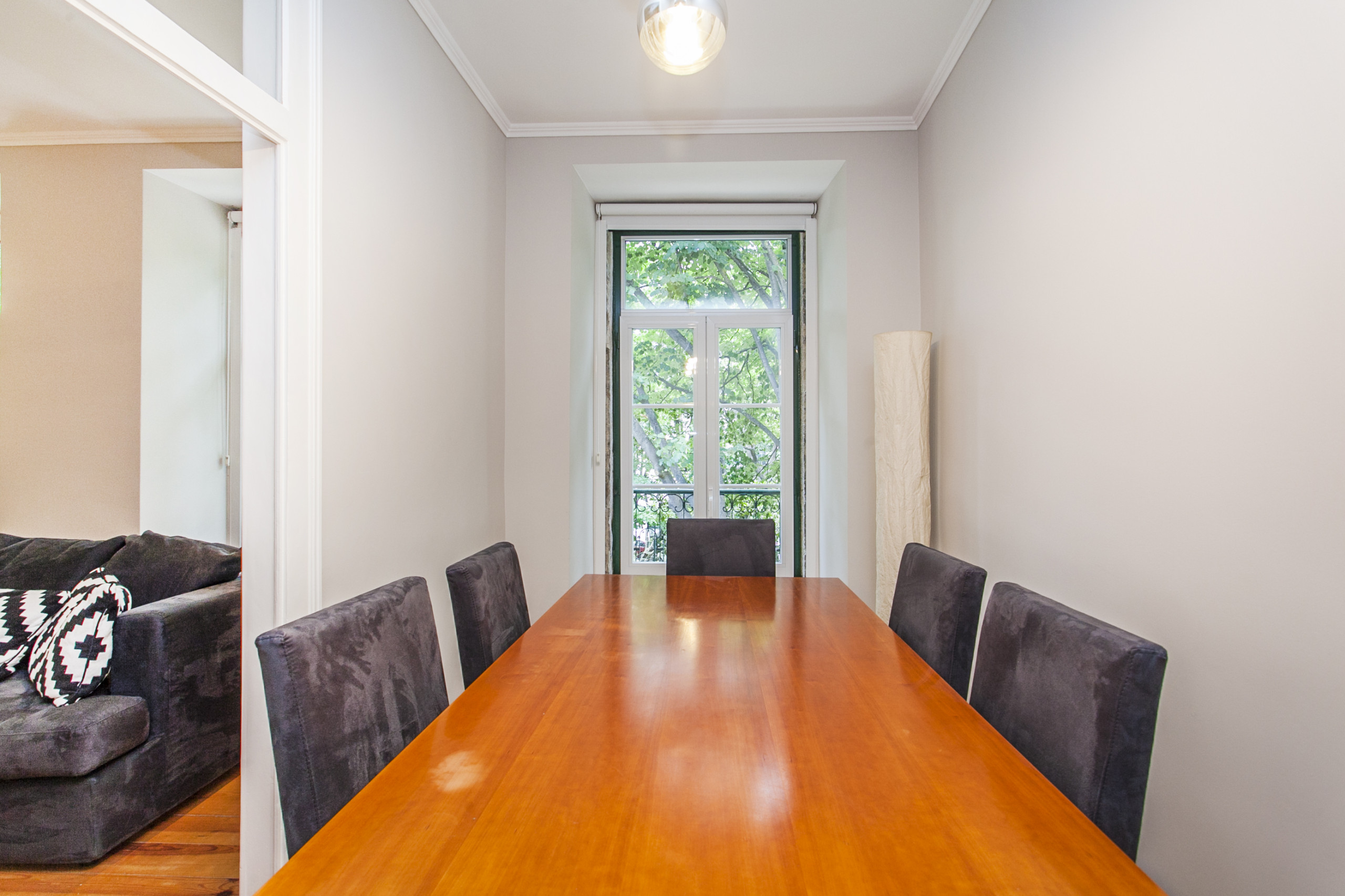 Situado no coração da Praça das Flores este apartamento agradável e espaçoso e tem tudo para tornar a sua visita uma Lisboa uma inesquecível. A entrada do apartamento é de Praça das Flores e oferece uma vista sobre o que nive quadrado da sala de estar e de jantar. O apartamento dispõe de uma grande sala de estar onde você pode relaxar e assistir TV que os conecta com a sala de jantar com uma grande mesa e seis cadeiras.