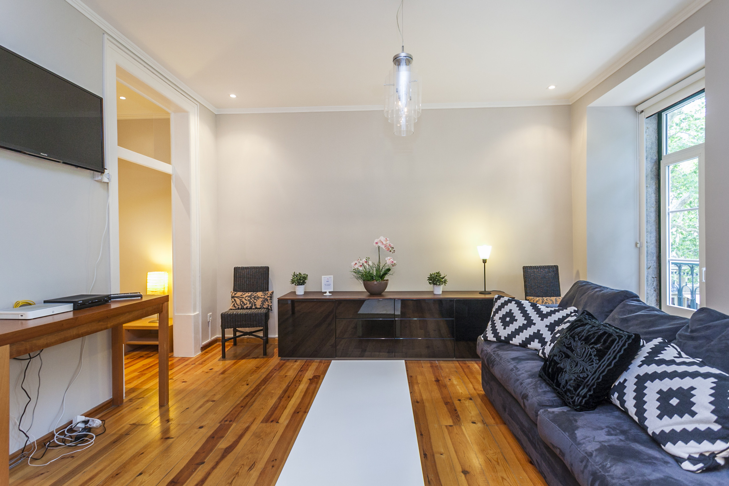 Situated in the heart of Praça das Flores this nice and spacious apartment has all to make your Lisbon visit an unforgetable one. The apartment entrance is from Praça das Flores and it offers a nive view over that square from the living and dining room. The apartment offers a big living room where you can relax and watch TV that conects with the dining room with a big table and 6 chairs.